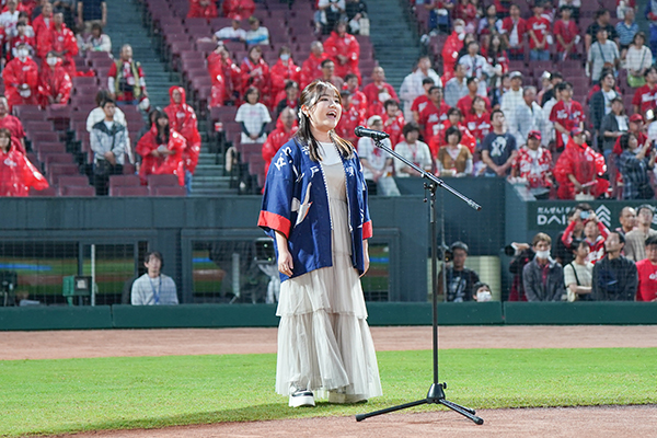 舟唄独特の節回しも感じる伸びやかで美しい歌声が球場全体に響き渡り、スタンドのお客様から大きな拍手が送られました!!