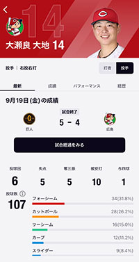 ■選手情報(セ・パ所属12球団全選手の最新成績、パフォーマンス、経歴などを搭載)