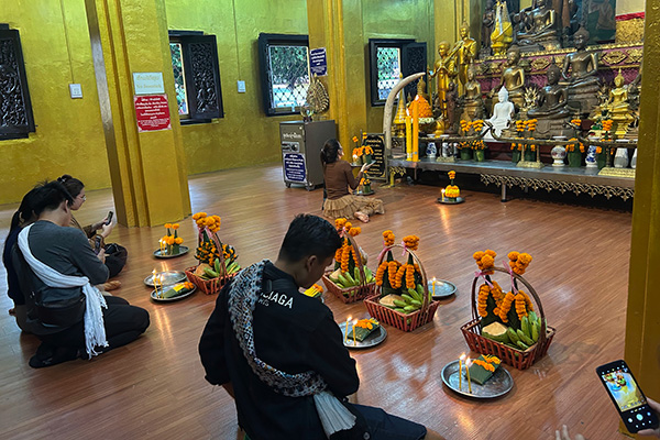 早朝に街中を回る僧侶に、信者が食品などを渡すことで功徳を積むという「托鉢」が行われていたり、平日の日中でも寺院に参拝に訪れる方が多くいらっしゃったりと、ラオスの方々の生活に仏教が根付いているのを感じました。