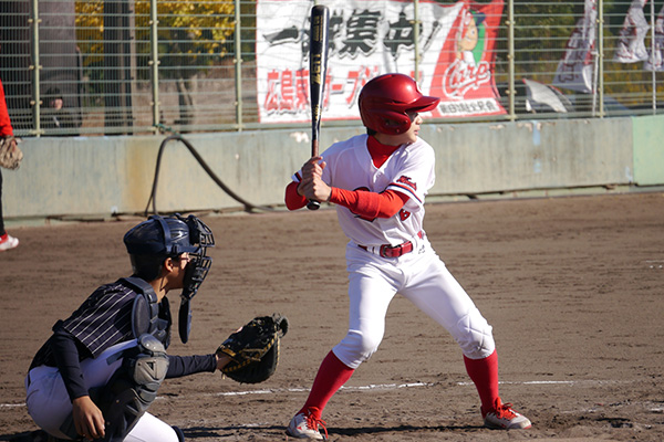 打線は初回、藤尾日向選手の右前打でチャンスを作ると、4番奥野翔選手が左前適時打を放ち先制。4回には藤田大智選手の二塁打を足掛かりに、妹尾瑛斗選手の左前適時打で追加点をあげました。先発の小土井悠雅選手は5回まで相手打線を完璧に抑え込んできましたが、6回に2点本塁打を浴びて同点となり、0死1.2塁から始まるタイブレークへと突入しました。代わった松下恵士選手が気迫の投球でピンチを凌ぐと、7回裏高山凌誠選手が犠打を決め、1死2.3塁から若松生選手が左犠飛を打ち上げてサヨナラ勝利となりました。