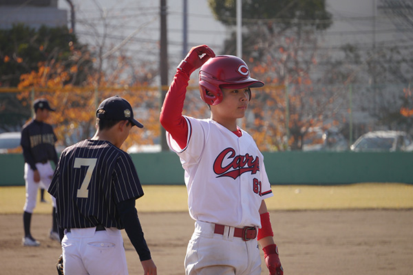 打線は3回、高山凌誠選手の右前打、若松生選手の中前打でチャンスを作ると藤田大智選手の右前適時打で1点を先制。4回には主将の隅田知希選手の本塁打で追加点をあげました。投げては先発の三上 琥太郎選手が完封。三塁手の小田龍聖選手、中堅手の妹尾瑛斗選手の好プレーもあり2-0で勝利をおさめました。