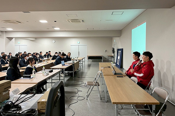 昨年に続き2度目の開催となる今年は、20校46名の生徒が参加し、データ分析や球団が取り組む野球振興について講習会を行いました。