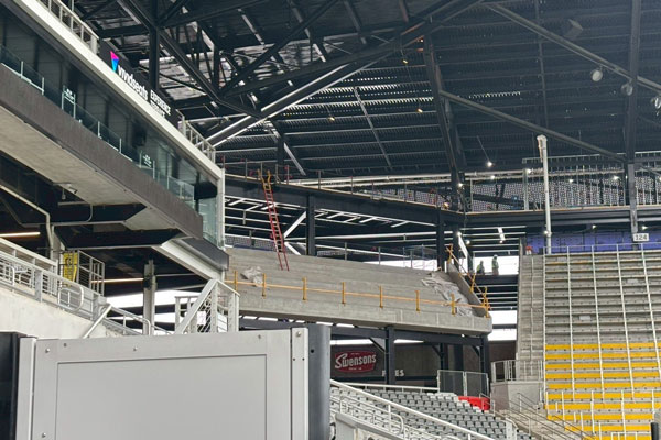 今回の視察にて、来シーズンに向けた新たな座席の増設工事(2ヵ所)の様子を見ることができました。収容人数だけ見ると決して大きなスタジアムではないですが、新たな座席を設けることで、来場者に楽しんでもらい、スタジアムを熱く盛り上げるための進化を続ける点は、私たちと共通した部分があるように感じました。
