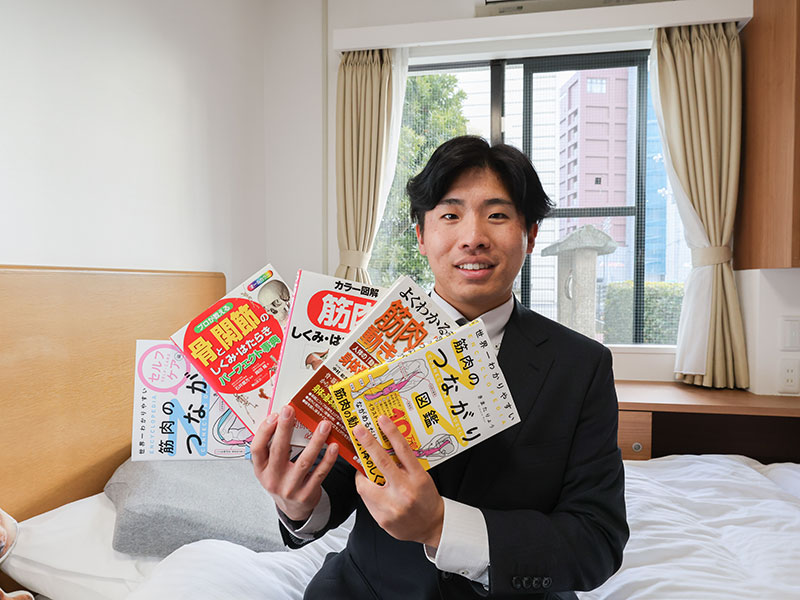 - A.ケガしたので、本を買って持ってきました。体のつながりとか、骨の仕組みとか5.6冊買ってきたので、これから読みたいと思います。