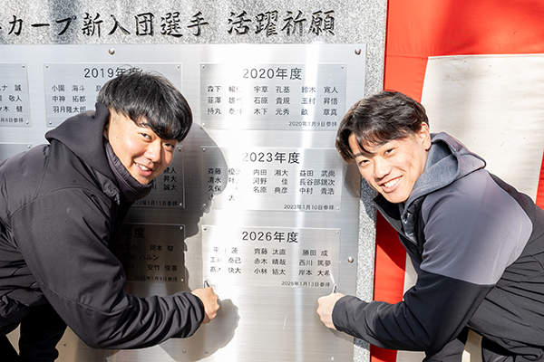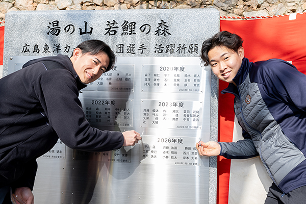 その後、選手を代表して平川選手・齊藤選手・勝田選手・工藤選手が、新入団選手の名前が刻印されたプレートの取り付けを行いました。